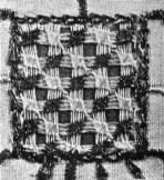 - TWO VARIETIES OF CANVAS-STITCH, the pattern in the bare linen, the background worked—A, plait-stitch, the ornament outlined; B, stitches drawn tightly together so as to pull the threads of the linen apart, giving very much the effect of drawn-work. Compare Illustration 2. (Mrs. L. F. D.)