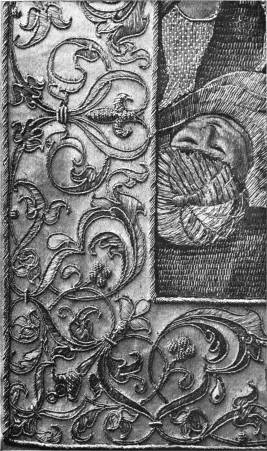 A feature in the book is the series of samplers designed to show not only what are the available stitches, but the groups into which they naturally gather themselves, as well as the use to which they may be put: and the back of the sampler is given too: the reader has only to turn the page to see the other side of the stitching—which to a needlewoman is often the more helpful. Lest that should not be enough, the stitches are described in the text, and a marginal note shows at a glance where the description is given. This should be read needle and thread in hand—or skipped. Samplers and other examples of needlework are uniformly on a scale large enough to show the stitch quite plainly. The examples of old work illustrate always, in the first place, some point of workmanship; still they are chosen with some view to their artistic interest.