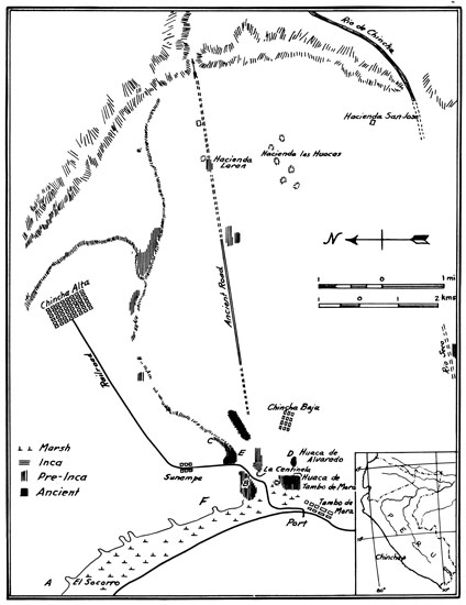 Six Chincha sites described in Uhle's field catalogue[3] are shown on map 1. The number of cloth specimens representing each of these sites varies from 2 to 52 (table 1). Briefly, the time periods indicated by finds forming the basis of this report are as follows.