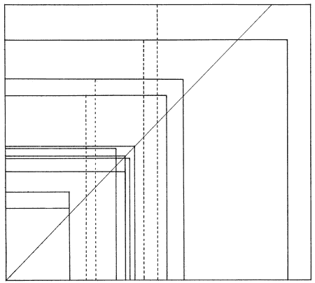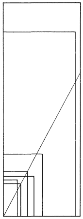 Fig. 2. Diagrams of seven rectangular specimens with length-to-width proportions approximately 2:1 as indicated by diagonal. Largest specimen, 62 inches by 22.5 inches.