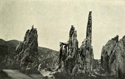 With the excursions offered,—grand panoramas of mountain views where the tourist from his lofty perch in the observation-car looks down on clouds and on peaks and pinnacles far below the heights to which his train[Pg 8] climbs,—with the cogwheel road ascending Pike's Peak, the fascinating drives through Cheyenne Cañon, the Garden of the Gods, Ute Pass, and around Glen Eyrie, and with the luxurious ease of life at "The Antlers," the traveller finds fairly a new world, rich in suggestion and wide outlook. This attractive region is, however, only one of the central points of interest in Colorado. Denver, the brilliant and fascinating capital; Pueblo, the metropolis of Southern Colorado; Glenwood Springs, the romantic and fashionable watering place and summer resort high up in the mountains on the beautiful "scenic route" of the Denver and Rio Grande; Boulder, the picturesque mountain town, with its State University so ably conducted; Greeley, the town of the "Union Colony," whose romantic and tragic story is a part of the great history of the Centennial State, and where an admirable normal school draws students from all over the country, even including New England,—these and a wealth of other features offer interest that is coming to engage the attention of the civilized world.