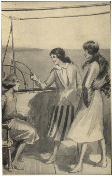 Upon their return to the yacht the girls discovered that they had missed a bit of excitement by their absence. The Captain had discovered smoke issuing from a small store-room back of the engine room and upon investigation it was found that crossed electric wires had started a small fire between the partitions. But this was soon extinguished and quiet reigned once more.