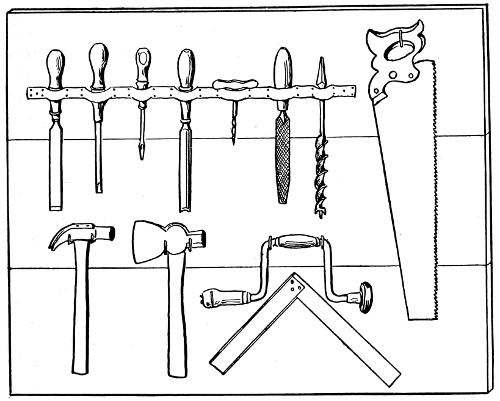 | The Workshop, 4; Tools, 5; The Carpenter’s Bench, 9; A Dressing-table, 11; A Wash-stand, 14; A Portable Corner Clothes-press, 15; A Five O’clock Tea Table, 16; A Piazza Flower-stand, 17; A Hooded Chair Made of a Packing-box, 21. | ||
