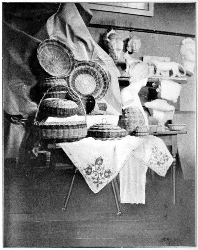 | Cone Hanging-basket, 58; Sweet-grass Mats, 59; Corn-husk Basket, 60; Lavender Sticks, 62; Braiding Palm-grasses and Corn-husks, 64. | ||