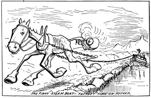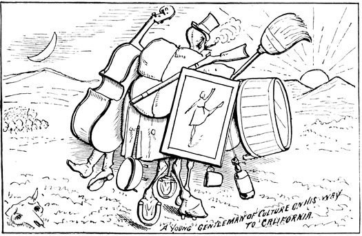 He went into the lecture field, holding forth to large and fashionable audiences, composed of intelligent savages, upon the science of navigation, illustrating his lecture with an old mariner’s compass that indicated all four of the cardinal points at once, and a superannuated bulls-eye watch that 36would do nothing but tick. These simple-minded children of nature listened with attentive ears, and looked on with wondering eyes, and came down largely with green corn, sardines, silk hats, hard boiled eggs, fall overcoats, pickled oysters, red handkerchiefs, ice cream, dried herring, kid gloves, pickled tripe, and other Indian luxuries, which proved invaluable to the starving, threadbare colonists. Thus it is seen that Mr. Smith obtained on tick[2] what he had no cash to pay for.