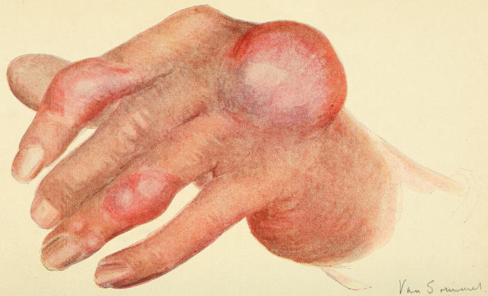 As to correlation of the metabolic phenomena of gout with the postulated infective element, I would suggest that, although abnormalities of metabolism form an integral part of gout, they are of themselves inadequate to achieve its efflorescence. As we shall see when we come to consider those elemental manifestations of gout, i.e., uratic deposits, or tophi, neither the purely physical nor the purely chemical theory of their origin will suffice, nor, for that matter, can any solution of their formation be gleaned from even a blend of the twain. In short, such hypotheses are too mechanical.