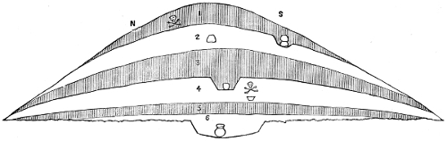 6 The elliptical form was evidently, in this case, the result of accident. The original mound had been circular, but the elongated form had been the consequence of successive interments.