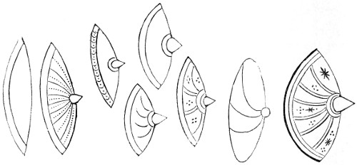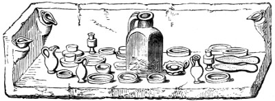 | Anglo-Saxon Period—Buckets—Drinking-cups of wood—Bronze Bowls—Bronze Boxes—Combs—Tweezers—Châtelaines—Girdle Ornaments—Keys—Hair-pins—Counters, or Draughtmen, and Dice—Querns—Triturating Stones, etc.—Conclusion | 280 |