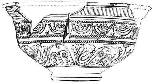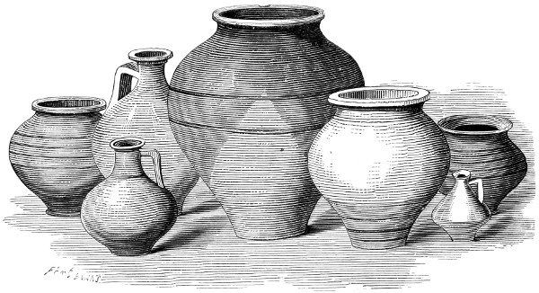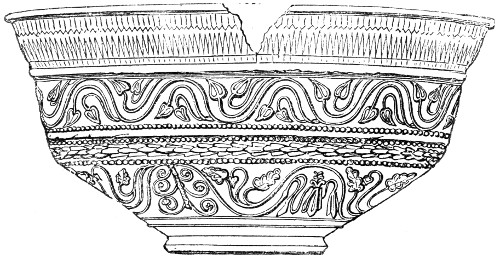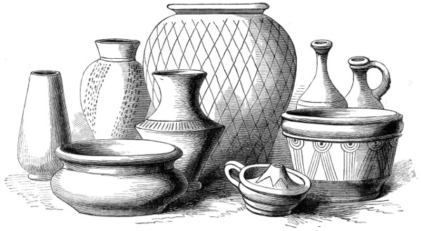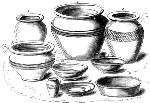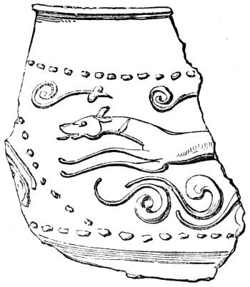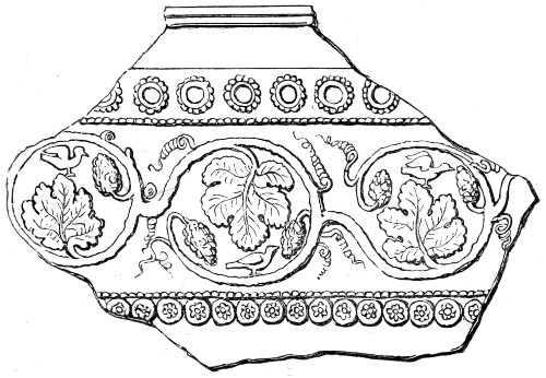 | Romano-British Period—Pottery—Durobrivian Ware—Upchurch Ware—Salopian Ware—Pottery found at Uriconium—Potteries of the New Forest, of Yorkshire, and of other places—Sepulchral Urns—Domestic and other vessels | 151 |