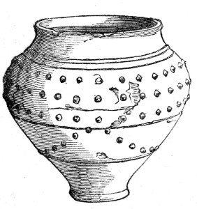 “This barrow of the British period presents unquestionable evidences of very primeval times, and contained the relics of a true aboriginal inhabitant of these islands, piously laid in his last resting-place with great care, but in all rude simplicity. It is rich in instruction, and marked by precise phases of information. It shows almost certainly the contemporaneous adoption of inhumation and cremation—the latter, perhaps, yielding to the first a short precedency; or possibly, in this instance, a rite of the nature of a “Suttee,” and subordinate to the former.”
