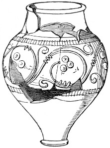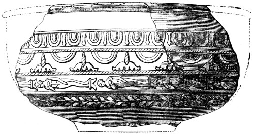 | Anglo-Saxon Period—Pottery, general characteristics of—Cinerary Urns—Saxon Urn with Roman Inscription—Frankish and other Urns—Cemeteries at Kings Newton, etc.—Mode of manufacture—Impressed Ornaments | 214 |
