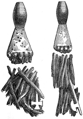 25 For articles upon this subject see the “Reliquary, Quarterly Archæological Journal and Review,” vol. ii., pages 61 to 70; and Mr. Bateman’s “Ten Years’ Diggings,” page 279.