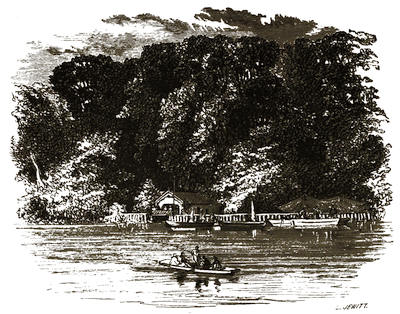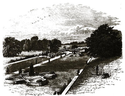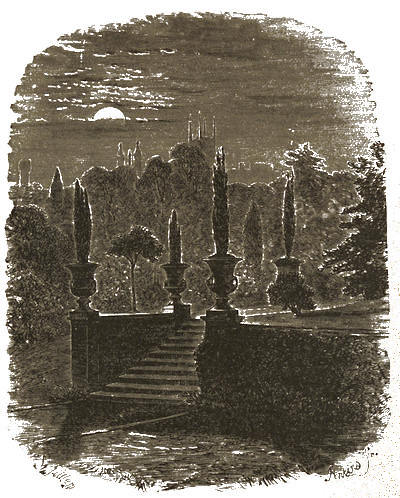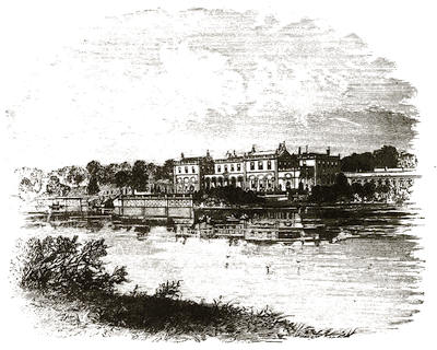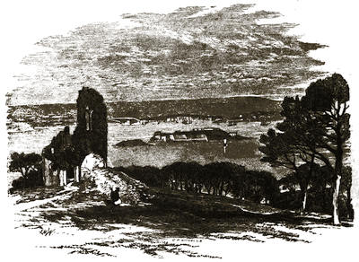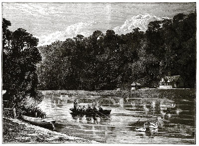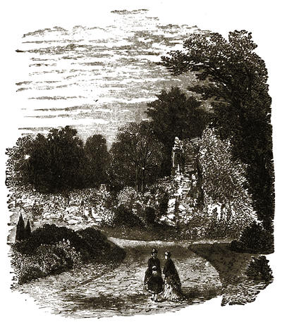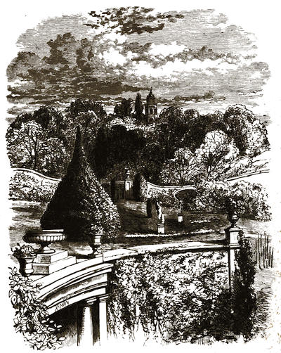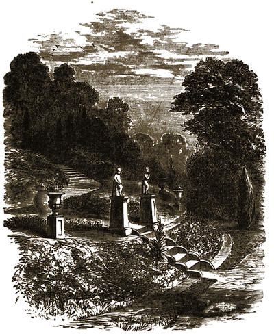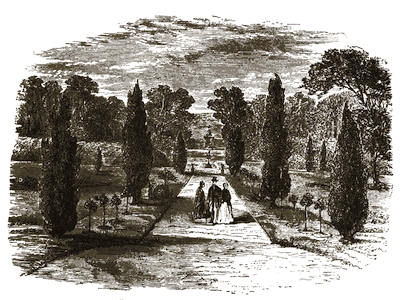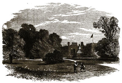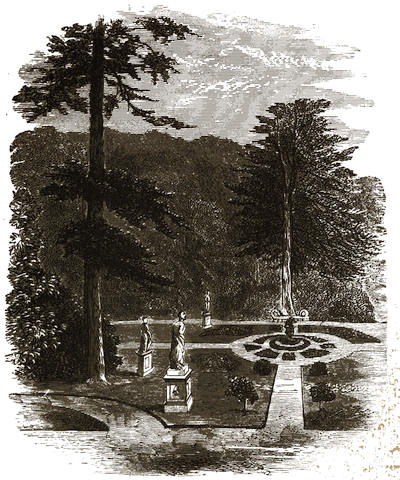 [12] The grounds are on Mondays freely open to all comers; but on any day visitors will be admitted to them by application at the Manor Office, Stonehouse, near to the ferry by which passengers are conveyed across. There is, however, a road for carriages; but that implies a drive of twelve miles there and twelve miles back, besides the drive of five or six miles round the Park.