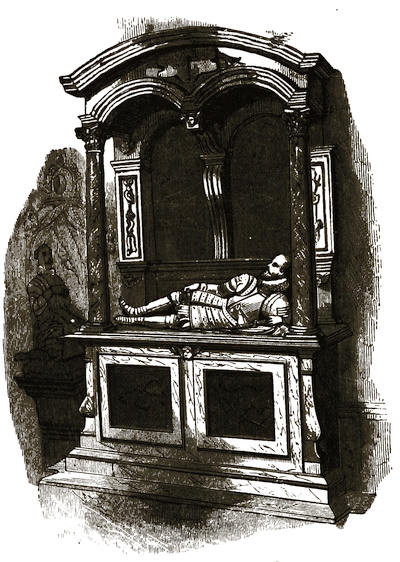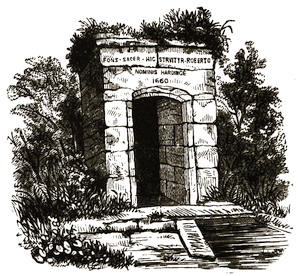 [34] It is a pretty legend—and one to which we direct the attention of artists—that while Guy was doing penance as a hermit, his lady was mourning his absence, and praying for his return at the castle. It was her daily custom to bestow alms upon the suffering, sorrowful, and needy; and dole was, among others, frequently given to the husband by the unconscious wife. He was dying at length, and then made himself known to her by the transmission of a ring. So she watched, and prayed, and comforted, beside his death-bed, surviving him but fourteen days; and they were both buried in the cave where the poor penitent had lived and died.