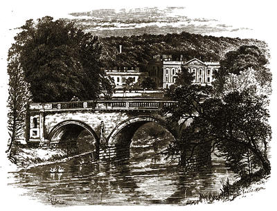 [36] The bridge was erected at the commencement of the present century by George Greville, Earl of Warwick. It is a single arch, forming the segment of a circle, 105 feet in span.