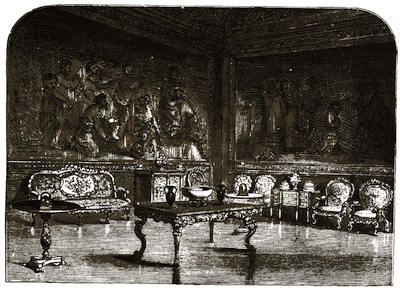 [32] To the park and to the several state rooms the public are on fixed days freely, graciously, and most generously admitted; and the history of the several leading attractions is related by attentive and intelligent custodians.