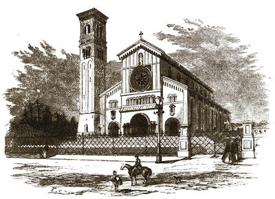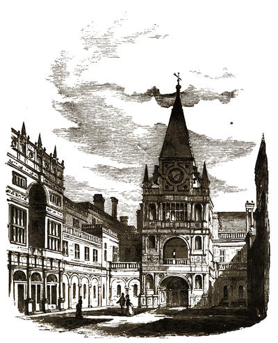 [11] The architect is C. F. Hayward, F.S.A. It is a handsome building, immediately fronting the Terminus, of a style which may be described as a free treatment of Gothic architecture, without any of the special characteristics which refer to one particular date—in fact, it is a modern design, well adapted to its purposes and position, and of substantial build, being of granite and limestone—combined with lightness and even elegance in certain details of terra-cotta work, from the well-known manufactory of Blashfield of Stamford.