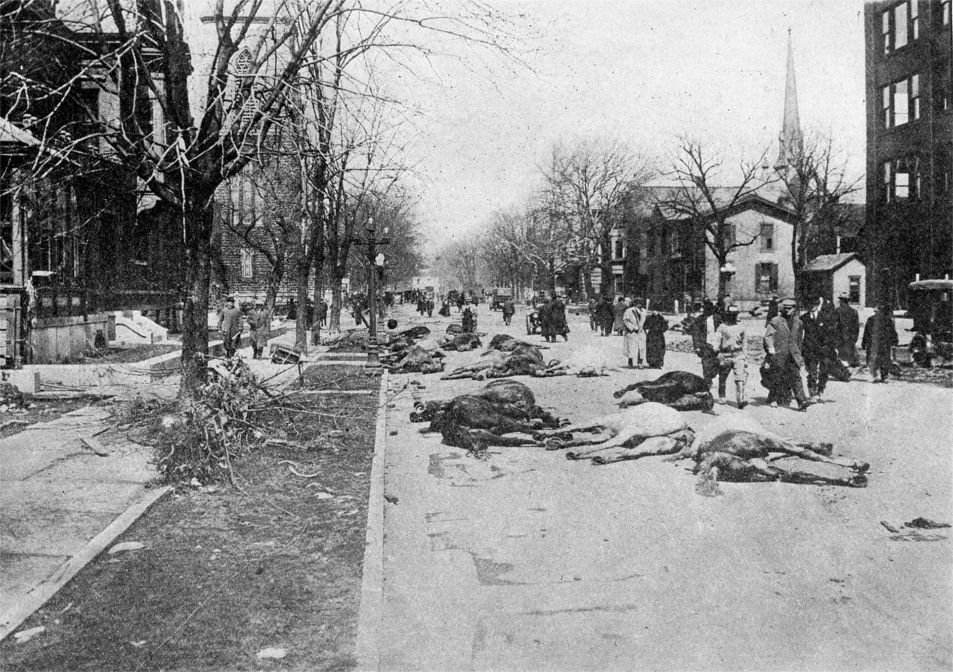 Think of the men, women, children and the little babies crushed and mangled amid the wreck of shattered homes—but yesterday as beautiful and bright as ours—the pallid faces of hundreds floating as corpses in the stately streets turned into rushing rivers by the relentless floods—brothers and sisters of ours, freezing and starving in homes turned suddenly into broken rafts and battered houseboats amid the muddy deluge, while the pitying stars look down at night upon thousands, wet, weeping, shivering, hungry, helpless and homeless, with the host of their unrecognized and unburied dead, in this frightful holocaust of fire and flood and pestilence.18