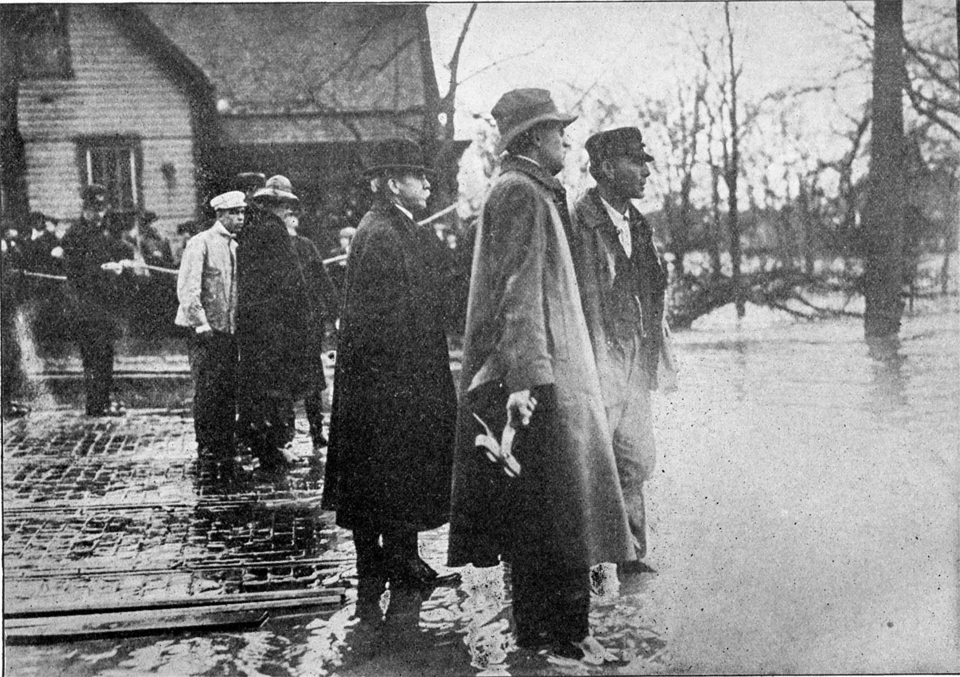 But the flood did not confine itself to Dayton. It laid its watery hand of death and destruction over a whole tier of states from the Great Lakes to New England, and over the vast area to the southward which is veined by the Ohio River and its tributaries, and extending from the Mississippi Valley almost to the Atlantic seaboard. And as this awful deluge drained from the land into Nature's watercourses the demons of death and devastation danced attendance on its14 mad rush that laid waste the borderlands of the Mississippi River from Illinois to the Gulf of Mexico.