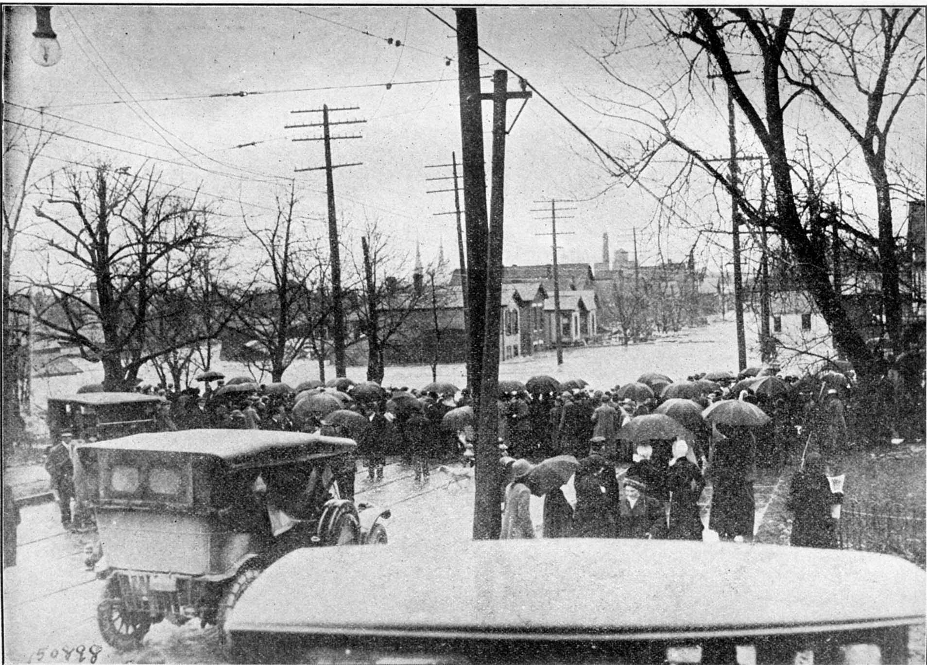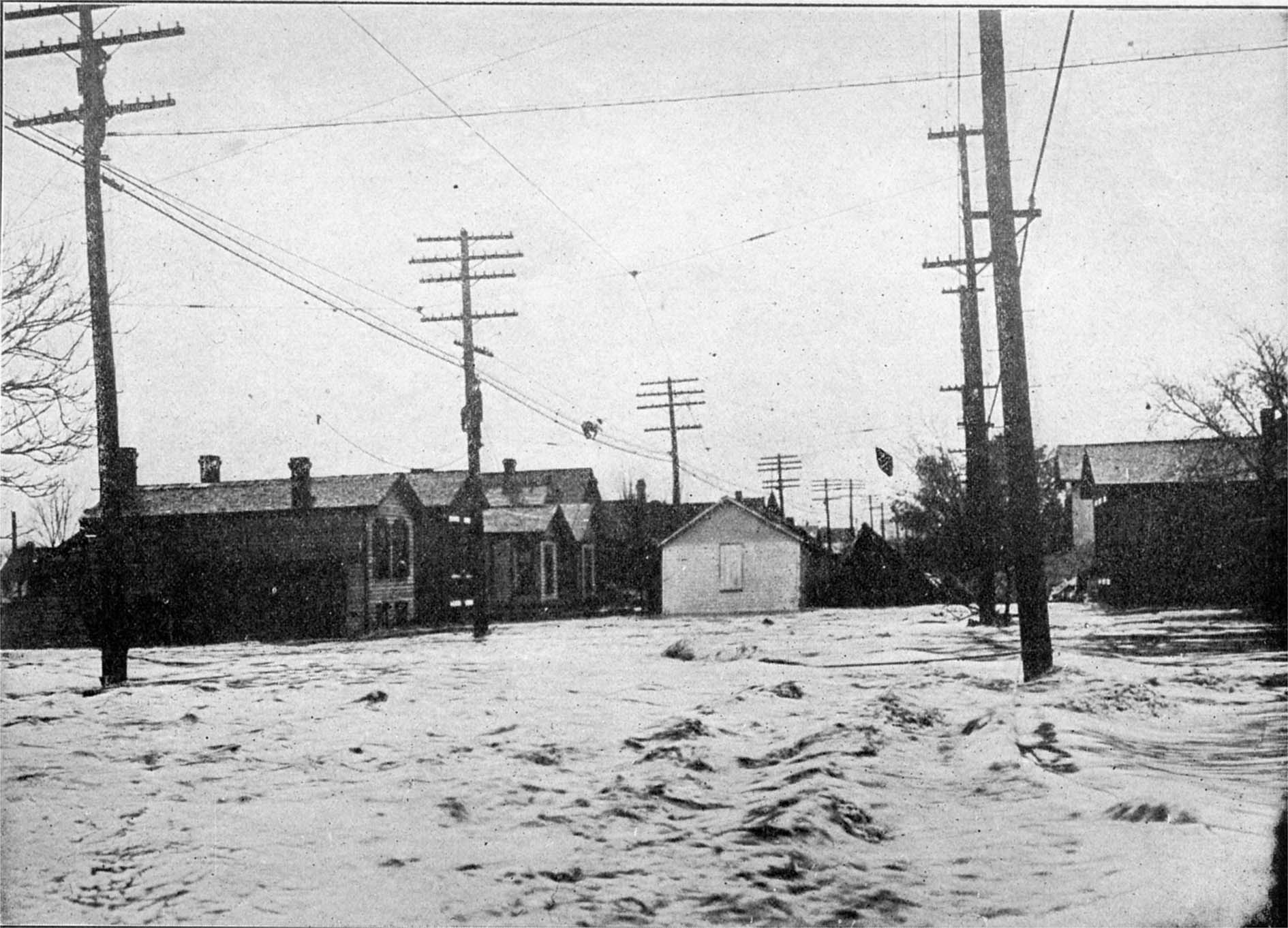 At Third and Ludlow Streets, where were located the great Algonquin Hotel, a magnificent church, the great Y. M. C. A. building and the Hotel Atlas, were many feet of water. The central portion of the city was flooded, and the beautiful residence district, lying east of the exclusive boulevard district, was a Venice.