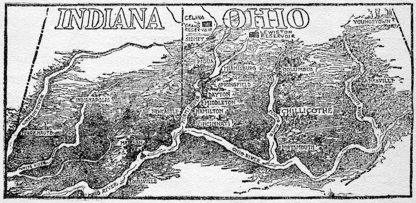 The topography of the country must be taken into account. Both valleys, the Miami particularly, are veined with streams tributary to the rivers, and in times of flood the water rises with amazing rapidity and spreads far and wide over the valley floor. The level character of the region in which Dayton itself lies and the fact that there is not enough pitch to the land below to carry off the water accounts for the depth and extent of the floods. Dayton has had many of them. What Congress can do to prevent or minimize them in future by putting the army engineers at work to construct dams for the collection and restraint of waters in the valleys north of the threatened cities must be done, whatever the cost.318