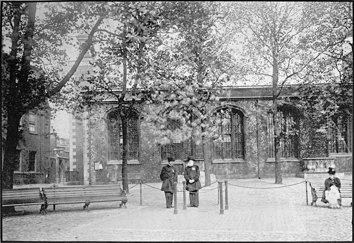Although it is probable that Suffolk’s body was buried in St Peter’s Chapel, his head is believed to be in the Church of the Holy Trinity in the Minories, a building which is within the ancient liberties of the Tower. The196 Duke’s town house was the converted convent of the church of the nuns of the order of Clares, so called after their foundress Santa Clara of Assisi. They were known as the “Sorores Minores,” whence the name of the district—the Minories. This building had been made over to Suffolk by Edward VI., and the present church of the Holy Trinity actually stands upon the site of the old convent chapel. This interesting edifice is now (1899) threatened with destruction, and in a few years it is extremely probable that the ground upon which it stands will be covered with warehouses or buildings connected with the London and North-Western Railway.