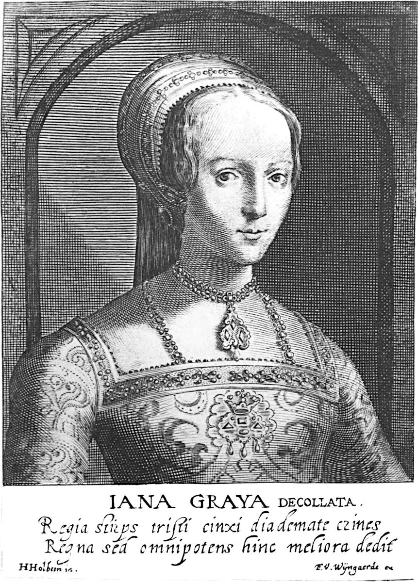 - Lady Jane Grey. (From an engraving by Wijngaerde, after the portrait by Holbein)