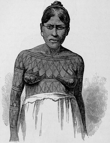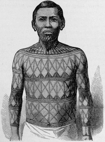 87. I did not succeed in getting good likenesses of this Mundurucu pair. The above wood-cuts do no justice to their features and expression, though they give a faithful record of the peculiar mode of tattooing.—L. A.