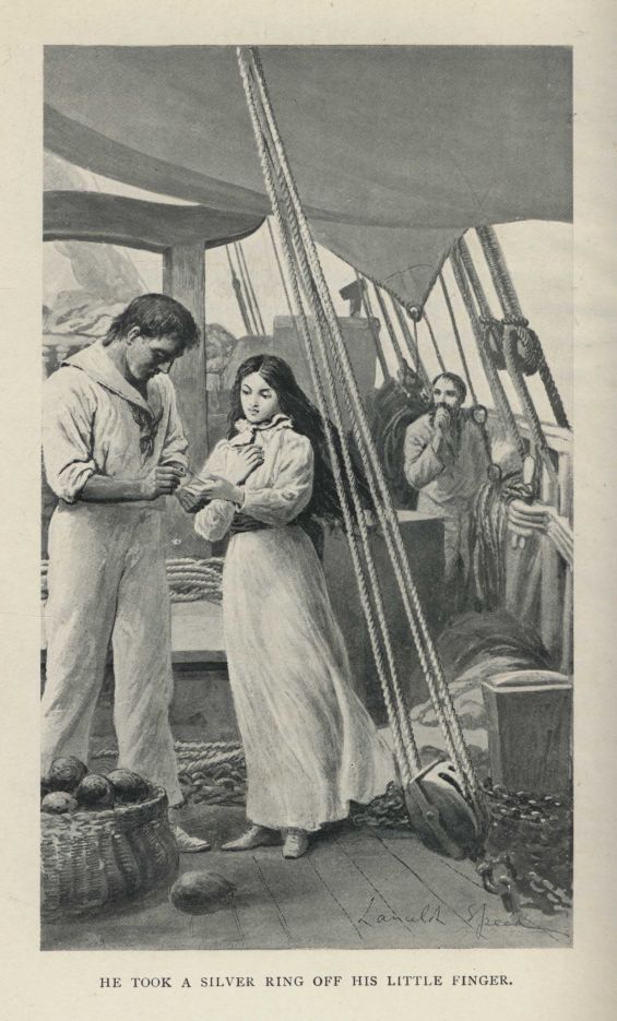 'No more, sir, just now!' cried Foster warningly to the man, who, with a great sob of joy, and the tears streaming from his haggard and sun-blackened face, had extended his hand for the bottle, 'no more just now for the little one. Pass her into my boat, and get in yourself; but first take some of this,' and he poured out a full drink.