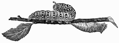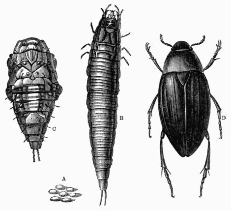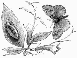 a. Perfect Insect. b. Perfect Insect emerging from the Pupa. c. d. Larvæ and Pupæ.