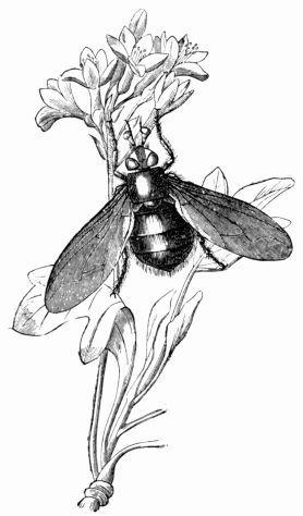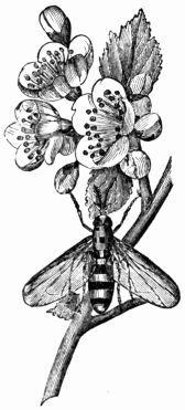 [90] In general, bees very much dislike bad weather; when they are foraging in the country, the appearance of a single cloud before the sun causes them to return home precipitately. However, if the sky is uniformly dark and cloudy, and if there are not any sudden alternations of darkness and light, they are not easily alarmed, and the first drops of a gentle rain hardly drive them away from their hunting-ground.