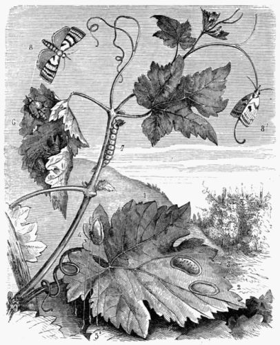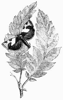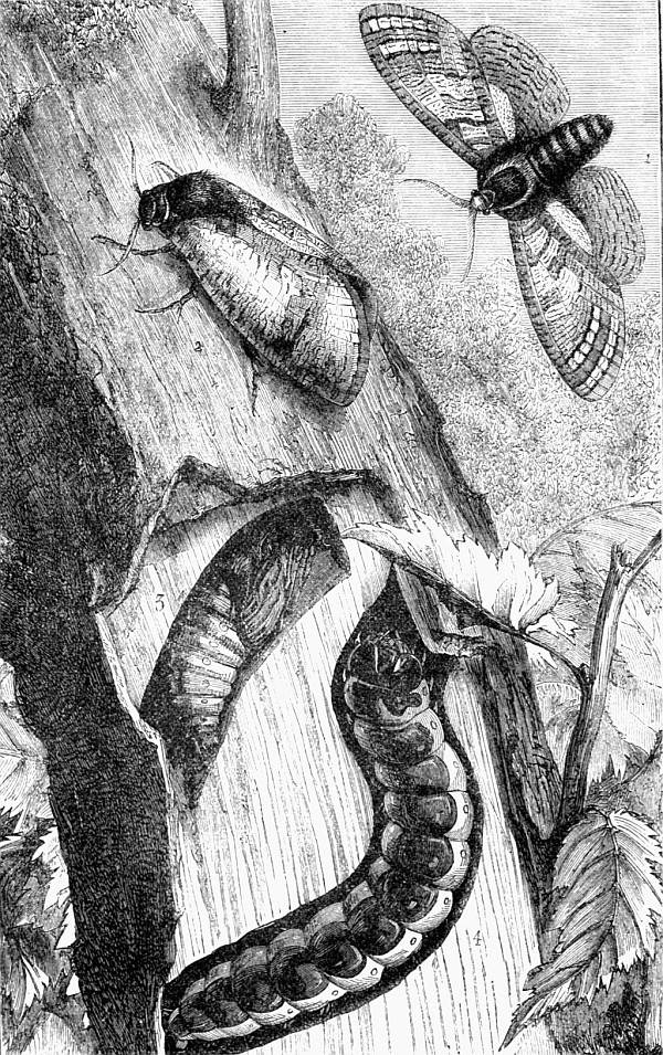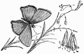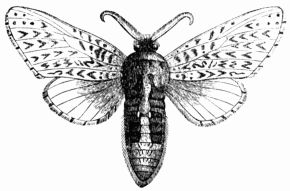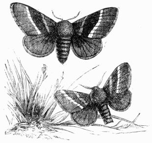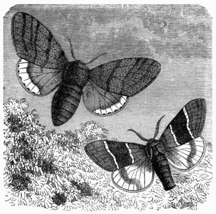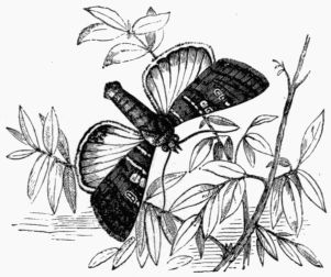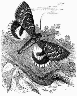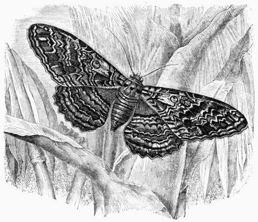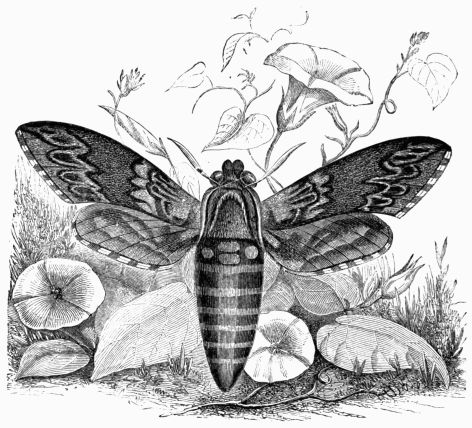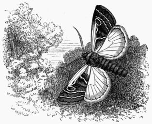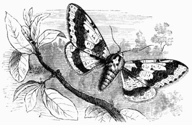 [69] In England it numbers about three hundred species. The larvæ are of diverse habits, but the majority feed on low plants; the moths are provided with a trunk, and are very partial to sweets.—Ed.