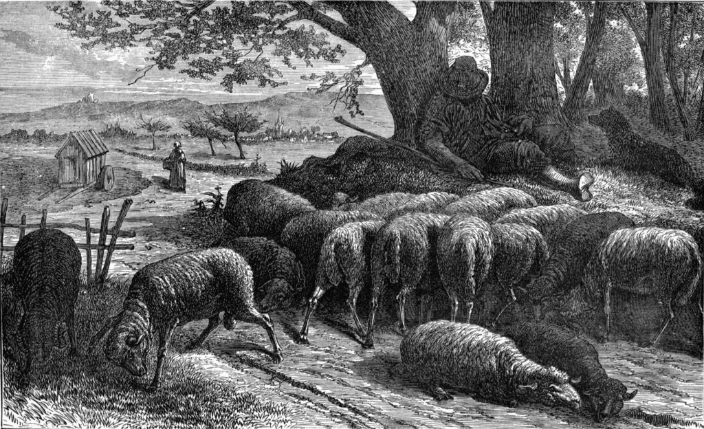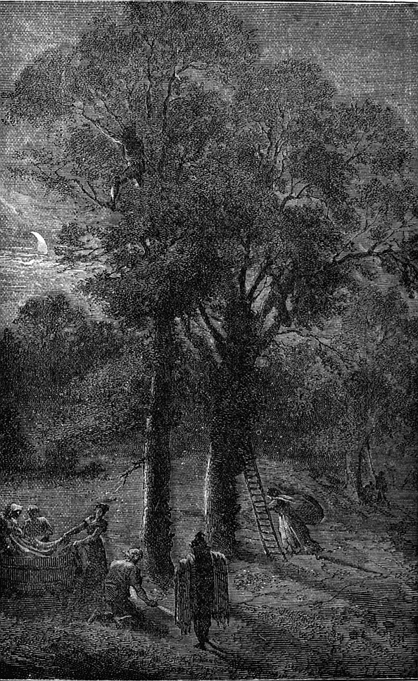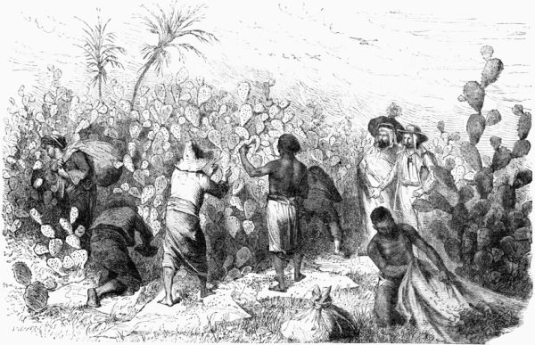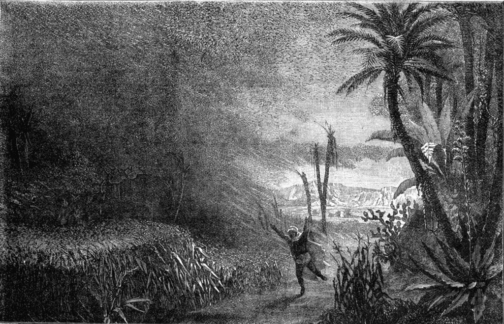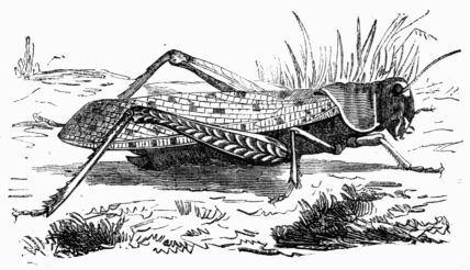 [79] "And Moses stretched forth his rod over the land of Egypt, and the Lord brought an east wind upon the land all that day, and all that night; and when it was morning, the east wind brought the locusts. And the locusts went up over all the land of Egypt, and rested in all the coasts of Egypt: very grievous were they; before them there were no such locusts as they, neither after them shall be such. For they covered the face of the whole earth, so that the land was darkened; and they did eat every herb of the land, and all the fruit of the trees which the hail had left; and there remained not any green thing in the trees, or in the herbs of the field, through all the land of Egypt."—Exod. x. 13-15.