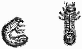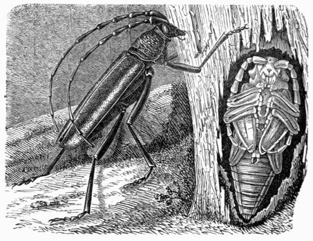 [121] The figure may possibly mislead, as it shows the larva and pupa in the ground, for although recent observations show that this species does occasionally undergo its metamorphoses therein, it is not probable that the larva lives anywhere but in wood.—Ed.