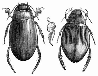 "The differences which exist in the organisation of the eye among insects are explicable, to a certain point, on the theory which we are about to explain in a few words. Those species which live in the same substances on which they feed, and those which are parasitical, have small and flattened eyes; those, on the contrary, which have to seek their food, and which need to see objects at a distance, have large or very convex eyes. For the same reason the males, which have to seek their females, have larger eyes than the latter. The position of the eyes depends also on their size and shape; those which are flat, and have consequently a short field of vision, are placed close together, and rather in front than at the sides of the head, and often adjoining. Spherical and convex eyes, on the contrary, are placed on the sides, and their axes are opposite. But the greater field of vision which they are able to take in makes up for this position."