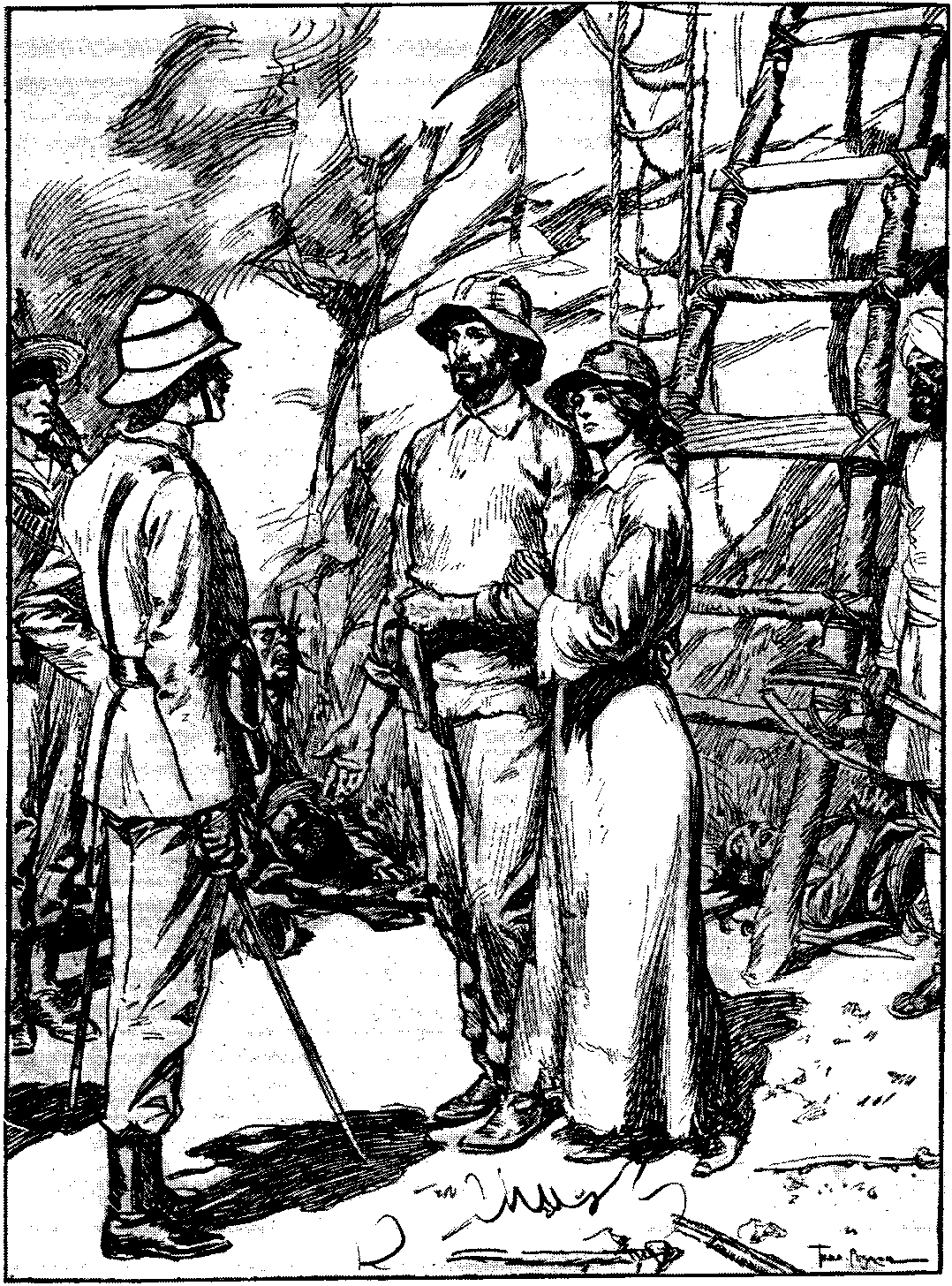 The news flew fast through the settlement that H.M.S. Orient had returned from her long search for the Sirdar. The warship occupied her usual anchorage, and a boat was lowered to take off the passengers. Lieutenant Playdon went ashore with them. A feeling of consideration for Anstruther prevented any arrangements being made for subsequent meetings. Once their courteous duty was ended, the officers of the Orient could not give him any further social recognition.