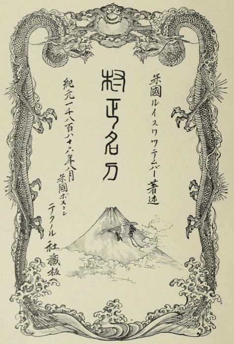 This story is an original tale of Old Japan, written almost from a Japanese point of view. It might be translated into that language; and, rendered in book form or told on a street corner by one of the itinerant story-tellers, the reader or listener would think it to accord fully with the traditions of the period in which it is supposed to have been enacted. Whether such a treatment will meet with approval here, it remains for the public to say. I have adhered to it against the advice of several eminent literary friends, to bring the story more into accord with our canons of style and construction. From the standpoint of a Japanese, none of the incidents or situations are in the slightest degree strained or exaggerated, and none of the characters overdrawn. All the historical allusions are strictly true and authentic,—as far as present knowledge on the subject goes,—and have been carefully and painstakingly culled from native chronicles.