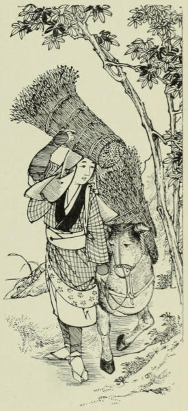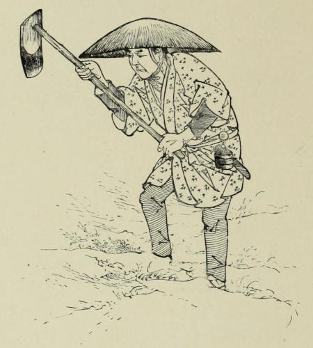 Without education or qualifications adapting him to the new order of things, the last of the line of Sennoske found himself in a sad condition. The miserable pension allowed him by government was inadequate to his barest needs; but even this was soon lost to him, and the accomplishments of peace having never been his, he was unable to care for himself. Fortune befriended him no more; those in places of official power and affluence no longer reverenced the rank of samurai, but turned him from their doors, and he sank lower and lower in the social scale, until only the most degrading position of all, that of the poor, despised jinrikisha man, was left to him. So to-day he lives, a connecting link between old and new Japan, between[188] the feudalism of the past and the encroachments of the foreign civilization of the present,—a monument to the ruin of chivalry, knightly pursuits, and glorious deeds of arms; a poor, ragged, despised jinrikisha man, but with a glorious heritage in the superb Muramasa blade which hangs on the walls of his hut.