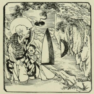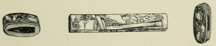 Moreover, they were a fruitful cause of accidents. Often, when an interval of peace which had lasted for fifteen or twenty years had caused such a sword to remain unused for that time, upon first being drawn it brought about some dire calamity. It was a common thing, in spite of every care being taken, for the blade to fall out in some unaccountable way and strike the wearer, inflicting a fatal wound. Among those who suffered in this way were some of Numa’s descendants. These, however, were almost the only misfortunes which overtook them. With the return of peace these casualties increased to such an alarming extent that at last the Shôgun’s government issued a peremptory order, forbidding the use of these swords throughout the entire country. Nevertheless, they were still prized in private; but the power of the Tokugawa’s rule was too strong and the edict too imperative to allow of its being in any way openly[186] disregarded. Muramasa blades after this were found mostly with a few of the most noted ronins and robbers, whom tradition speaks of as having been wonderfully successful.