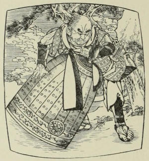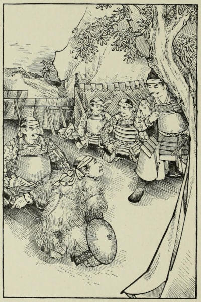 “Sorrow is bad for old age,” he said; “it withers up the tree of life quicker and surer than the cold north winds wither the blooming chrysanthemum. Cheer up, and do not let me see you so downcast at this trumpery business, especially now that we are nearing home. As soon as I have regained my sword,[125] I shall feel like teaching these gentry a lesson at which you may have to assist me; so—”