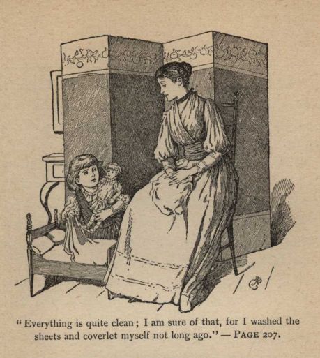 Anna soon found little pupils, and trudged away each morning to her daily task, pausing at the corner to wave her hand to me in answer to my salute with the duster. My father went to his classes at his room down town, mother to her all-absorbing poor, the little girls to school, and I was left to keep house, feeling like a caged sea-gull as I washed dishes and cooked in the basement kitchen, where my prospect was limited to a procession of muddy boots.