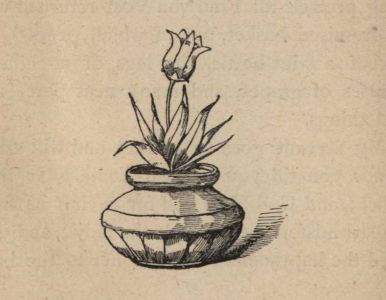 She began to knit next day as soon as the breakfast of dry bread and water was done; but she took her work to the doorstep and thought busily as the needles clicked, for where could she get money enough for meat and wine? The pretty pot stood beside her, and the tulip showed its gay leaves now, just ready to bloom. She was very proud of it, and smiled and nodded gayly when a neighbor said in passing, "A fine flower you have there."