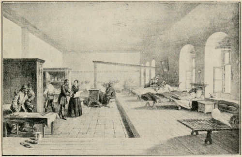 When the winter came on, the sufferings of the soldiers increased. The army was engaged in the siege of Sevastopol, and Miss Nightingale described the sufferings endured by the soldiers there in a letter to a friend: “Fancy working five nights out of seven in the trenches! Fancy being thirty-six hours in them at a stretch, with no food but raw salt pork sprinkled with sugar, rum, and biscuit; nothing hot ... fancy through all this the army preserving their courage and patience as they have done. There is something sublime in the spectacle.” The hospitals were crowded with men brought in ill from the results of this exposure. Early in 1855 fifty more trained nurses were sent out from England, and they came in time to help in a terrible outbreak of cholera which filled the hospital with new patients, most of whom died after a few hours’ suffering. Frost-bitten men were brought in too from Sevastopol, and of all these sufferers at least half died in spite of the care of the nurses. Again and again it was Miss Nightingale who comforted the dying and received from them the last message to be sent to the dear ones at home. She wrote down their words and took care of their watches or other possessions which they wished to send home.