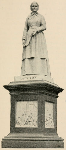 When, later, it was discussed what memorial of her should be placed in Walsall some suggested a Convalescent Home, as what she herself would most have desired; but the working men of the town were quite clear that what they wanted was a statue of Sister Dora. One of them said that of course they could not forget her, but that they wanted her to be there, so that when strangers came and saw the statue and asked who it was, they might answer, “Who’s that? Why that’s our Sister Dora.” So her statue in her nurse’s dress, as she lived and worked amongst them, stands in the centre of Walsall to remind the people of her life of love. The workmen spoke of her as “the most saintly thing that was ever given us.”