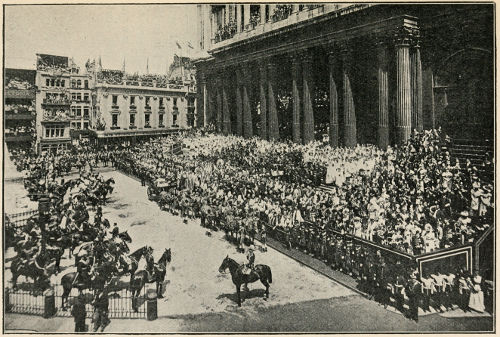 In 1897 when she had reigned sixty years, her second, or diamond, Jubilee was celebrated. This time a great state procession was made all through London, and on reaching St. Paul’s Cathedral, the Queen’s carriage paused at the bottom of the steps for a brief service of thanksgiving.