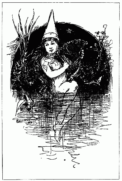 Two boys were gambolling by a river, when a Neck rose up to the air, smiling, and twanging his harp. The elder child watched him, and cried mockingly: "Neck! what is the good of your sitting there and playing? You will never be saved!" And the Neck's sensitive eyes filled with tears, and, dropping his harp, he sank forlornly to the bottom. But when the brothers had gone home, and told their wise and saintly father, he said they had been thoughtlessly unkind; and he bade them hurry back to the river, and comfort the little water-spirit. From afar off they saw him again on the[21] surface, weeping bitterly. And they called to him: "Dear Neck! do not grieve; for our father says that your Redeemer liveth also." Then he threw back his bright head, and, taking his harp, sang and played with exceeding gladness until sunset was long past, and the first star sent down its benediction from the sky.