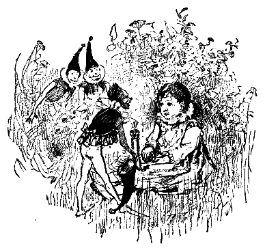 A young Scotch child, whom we will call Alan, sits by the fire, when a pretty creature the size of a doll, waltzes down the chimney to the hearth, and begins to frolic. When asked its name it says shrewdly: "Ainsel"; which to the boy sounds like what it really is, "Ownself," and makes him,[145] when it is his turn to be questioned, as saucy and reticent as he supposes his elfin playfellow to be. So Alan tells the sprite that his name is "My Ainsel," and gets the better of it. For bye-and-bye they wax very frisky and friendly, and right in the middle of their sport, when little Alan pokes the fire, and gets a spark by chance on Ainsel's foot, and when he roars with pain, and the old fairy-mother appears instantly, crying angrily: "Who has hurt thee? Who has hurt thee?" the elf blurts, of course, "My Ainsel!" and she kicks him unceremoniously up chimney, and bids him stop whimpering, since the burn was of his own silly doing! Alan, meanwhile, climbs upstairs to bed, rejoicing to escape the vengeance of the fairy-mother, and chuckling in his sleeve at the funny turn things have taken.