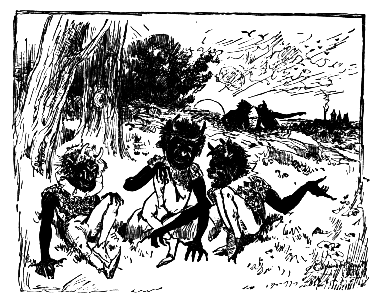 In that merry company were many who have escaped us, and who sit in a blossomy corner by themselves, the oddest of the odd: like the Japanese Tengus, who have little wings and feathers, like birds, until they grew up; mouths very seldom opened, and most amazing big noses, with which, on earth, they were wont to fence, to whitewash, to write poetry, and to ring bells! There, too, were the dark-skinned Indian wonder-babies: Weeng, whom Mr. Longfellow celebrates as Nepahwin, the Indian god of sleep, with his numerous train of little fairy men armed with clubs; who at nightfall sought out mortals, and with innumerable light blows upon their foreheads, compelled them to slumber. The great boaster, Iagoo, whom Hiawatha knew, once declared that he had seen King Weeng himself, resting against a tree, with many waving and music-making wings on his back. Indian, likewise, was the spirit named Canotidan, who dwelt in many a hollow tree; and the lively fellow, Taknakanx Kan, who sported "in the nodding flowers; who flew with the birds, frisked with the squirrels, and skipped with the grasshopper;[156] who was merry with the gay running brooks, and shouted with the waterfall; who moved with the sailing cloud, and came forth with the dawn." He never slept, and never had time to sleep, being the god of perpetual motion. Near him, perhaps, see-sawed a couple of long-eyed Chinese San Sao, or the glossy-haired Fées of Southern France pelted one another with dew-drops. There also, the African Yumboes had their magnificent tents spread: those strange little thieving Banshee-Brownies,[157] wrapped in white cotton pangs, who leaned back in their seats after a gorgeous repast, and beheld an army of hands appear and carry off the golden dishes! There abided, as the venerated elder of the rest, the long-bearded Pygmies whom Homer, Aristotle and good Herodotus had not scorned to celebrate, whom Sir John Mandeville avowed to be "right fair and gentle, after their quantities, both the men and the women.... And he that liveth eight year, men hold him right passing old ... and of the men of our stature have they as great scorn and wonder as we would have among us of giants!"