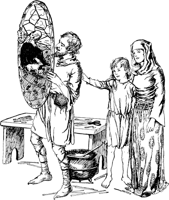 Alan, who seldom talked of an idea until he had tried it out, betook himself to a corner and began doing odd things with his blowpipe. The others went to work on a reliquary, and paid no attention to him until their work was well under way. Then there was a chorus of admiration. The sheet of glass just ready for the annealing was of the true heavenly azure that Brother Basil had tried in vain to get.