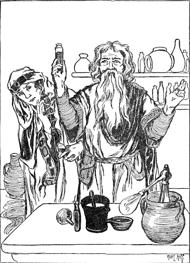 Meanwhile the monk and the physician worked with absorbed intentness at their crucibles and stills. There was a slight explosion one evening, and a country lout of the neighborhood told of it. Next day a neighboring farmer ventured to ask Padraig what was going on in the ruined tower.